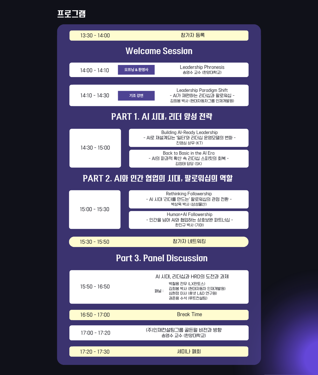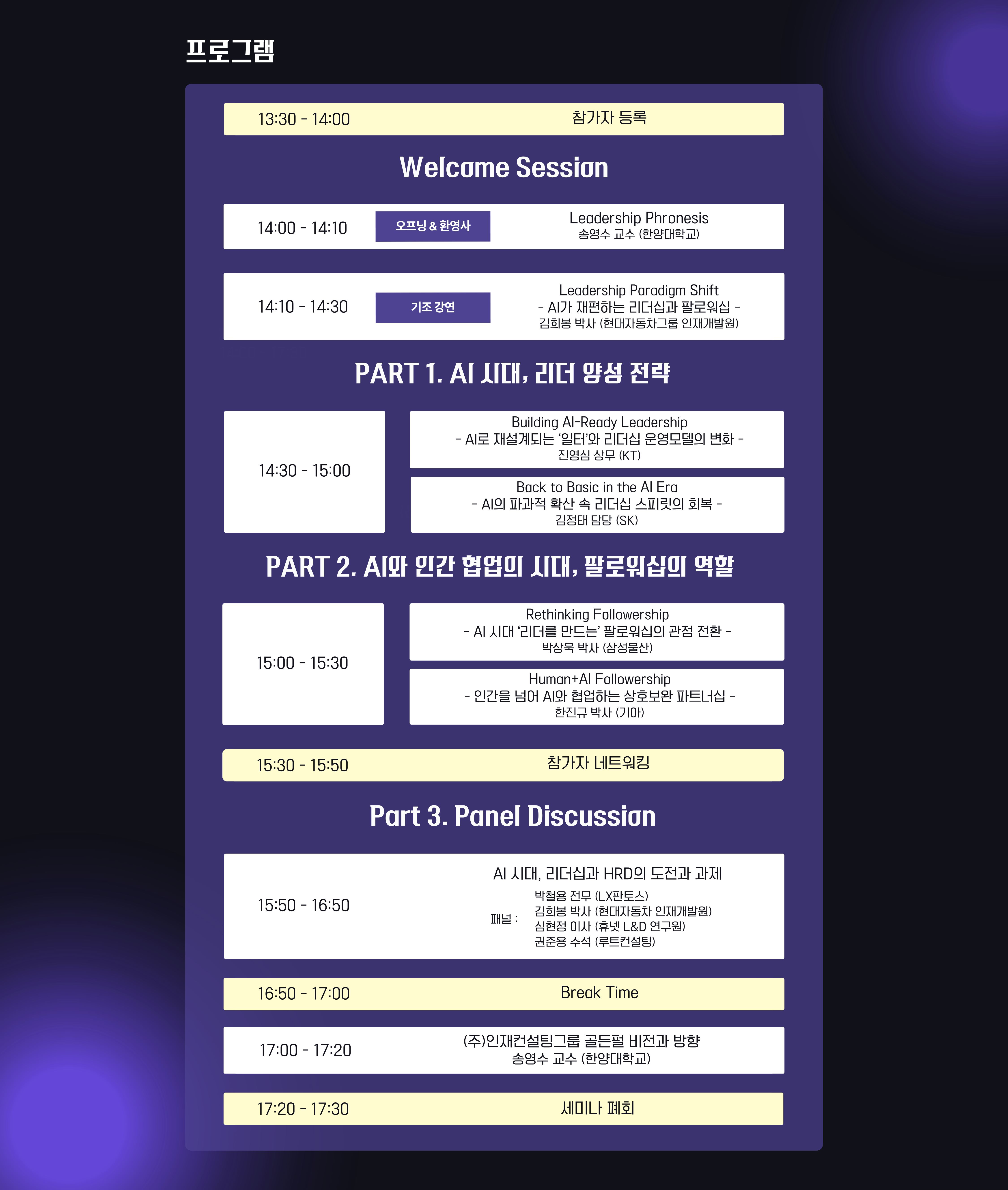 세미나는 14시부터 시작되며, 시작 20분 전인 13시 40분부터 입장이 가능합니다.