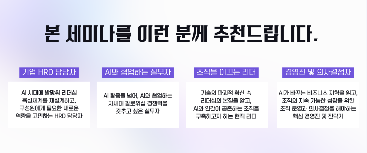 원활한 세미나 진행과 저작권 보호를 위해 사진/동영상 촬영 및 녹음은 금지되어 있습니다. 강연에 온전히 집중해 주시길 부탁드립니다.