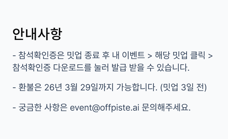 전화: 02-6339-1015 | 이메일: help@offpiste.ai